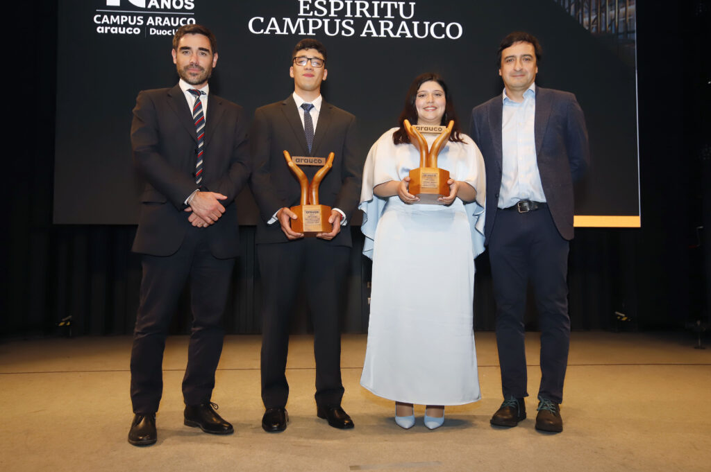 La ceremonia también reconoció a estudiantes destacados con el premio Espíritu Campus Arauco, distinción que refleja la perseverancia y el compromiso con los valores del proyecto.