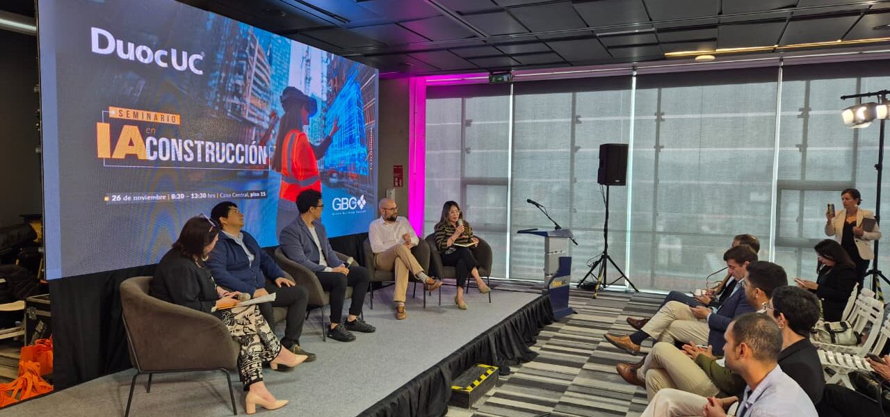 Líderes de la industria, académicos e investigadores se reunieron en el seminario Inteligencia Artificial en Construcción: innovando en gestión, eficiencia y sostenibilidad, impulsado por Duoc UC en colaboración con Chile Green Building Council (GBC).