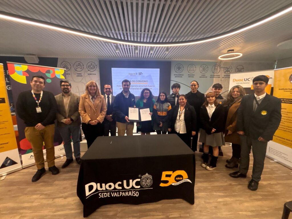 La alianza permitirá que más de 150 estudiantes de tercero y cuarto medio de las especialidades de Turismo, Informática y Logística accedan a una experiencia formativa en alternancia. Esta contempla módulos prácticos y actividades en terreno diseñadas por docentes de Duoc UC, enfocados en el desarrollo de habilidades clave como programación en Python y Java, guiado turístico urbano y técnicas de seguridad en bodegas, dependiendo de la especialidad.
