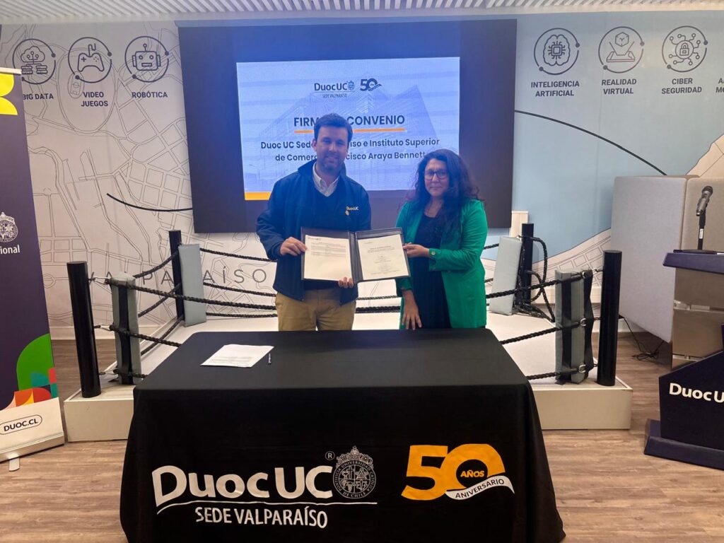 Durante el mediodía del martes 6 de mayo, en el Centro de Innovación y Transferencia Tecnológica (CITT) de Duoc UC Sede Valparaíso, se llevó a cabo la ceremonia de firma del convenio de alternancia entre el Instituto Superior de Comercio “Francisco Araya Bennett” (INSUCO) y Duoc UC.