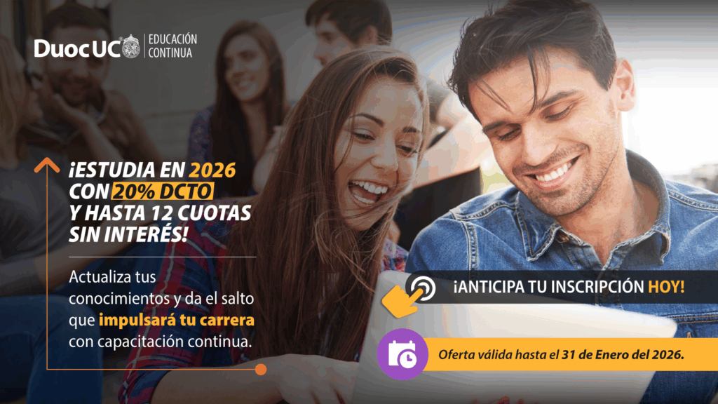 – 30% en cursos y diplomados para titulados de Duoc UC
