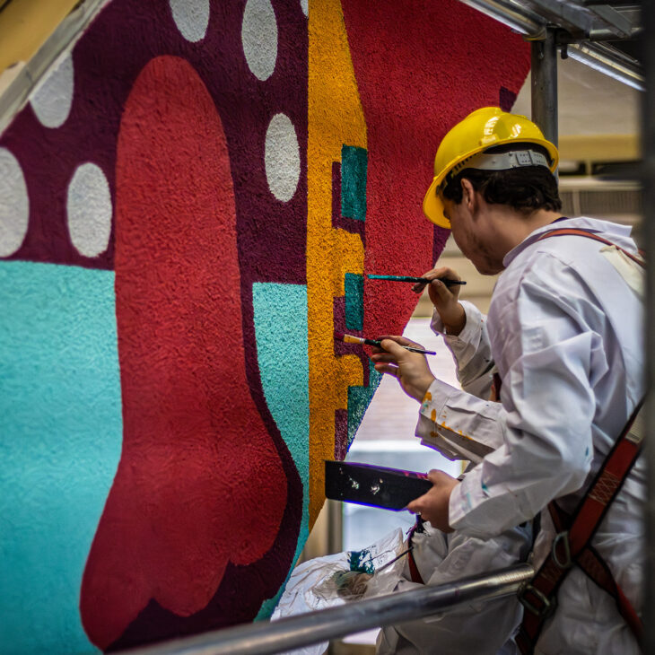 Estudiantes de Duoc UC realizan proyecto de mural artístico en icónico centro comercial Apumanque