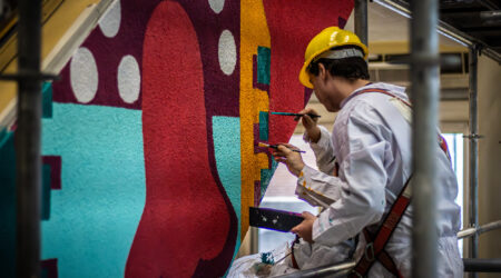 Estudiantes de Duoc UC realizan proyecto de mural artístico en icónico centro comercial Apumanque